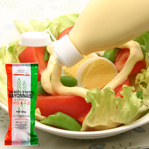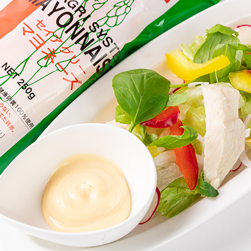 添加物に頼らない美味しくて安心して召し上がっていただけるセイアグリーマヨネーズは素材の味を十分にひきたてます。
