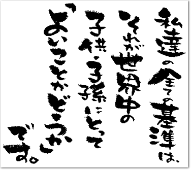 私達の全ての基準は、それが世界中の子供・子孫にとって「よいことかどうか」です。