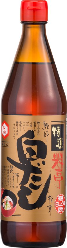 七福醸造の白だしは有機JAS認定工場で造った『有機白醤油』 鹿児島県枕崎産の三度以上カビ付けした鰹節『本枯れ節』・ 北海道産の『昆布』・大分県産の肉厚椎茸『どんこ』など だしをたっぷりブレンドした贅沢なだし入り白醤油です。